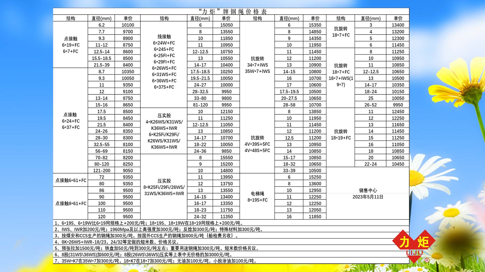 2023年5月第二期价格通知:尊敬的客户,您好!本期价格下调100元/吨,“力炬”“众炬”差价200元/吨,详情请咨询各区域业务经理!